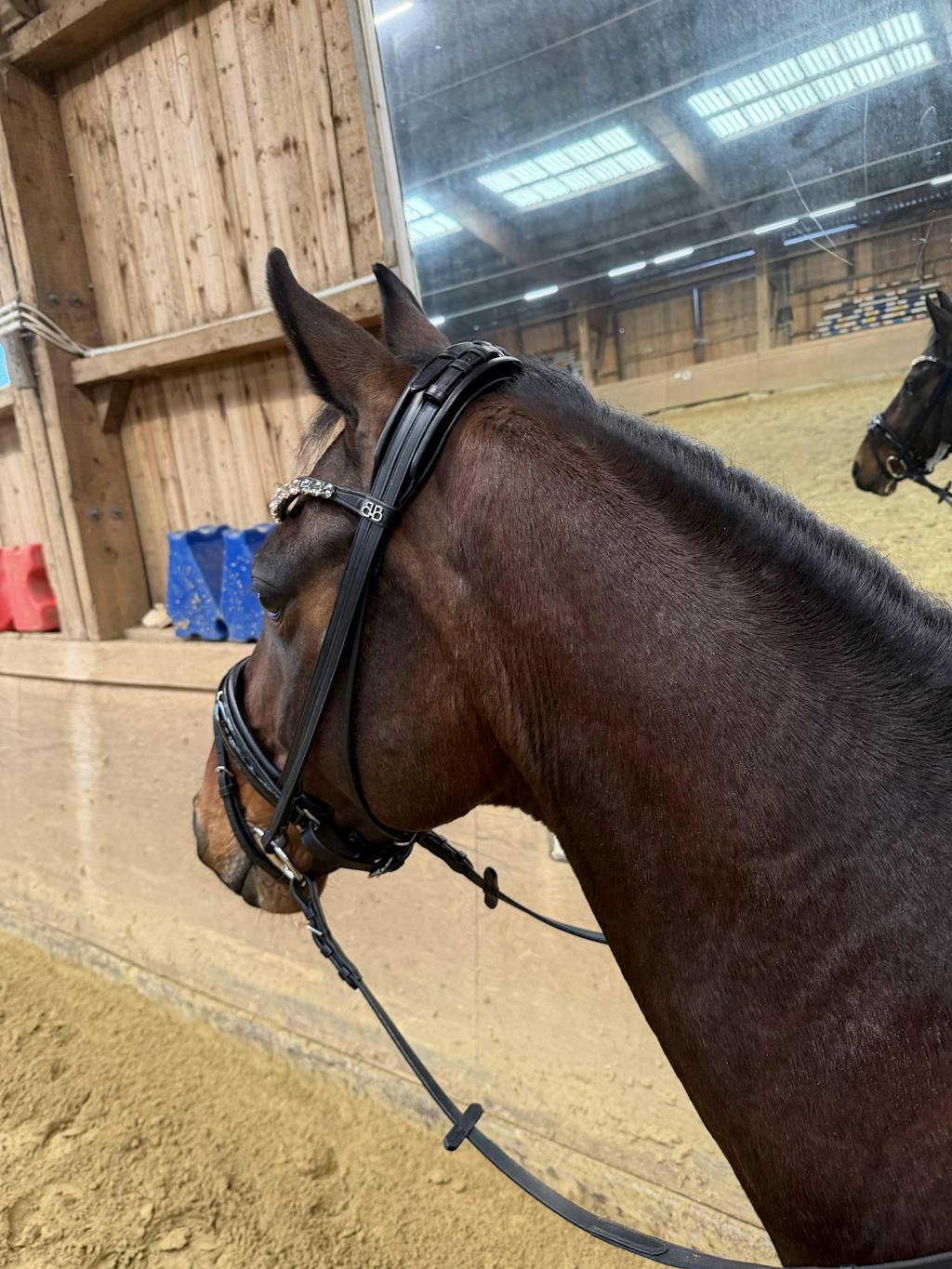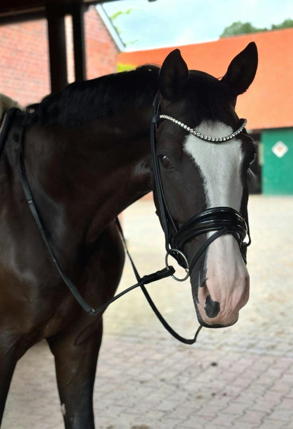 Unser funkelnder Stirnriemen ist das Herzstück deines Zaumzeugs. Bitte achte darauf, dass sich dein Pferd damit nicht scheuert oder wälzt. Kontrolliere regelmäßig die Kristallfassungen – gelockerte Häkchen kannst du vorsichtig andrücken (z. B. mit einer Pinzettenrückseite).