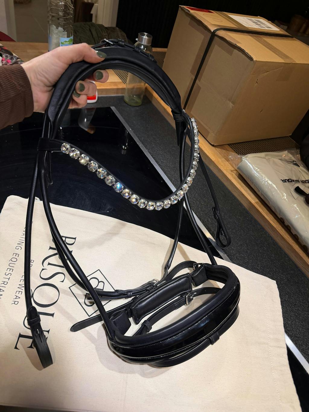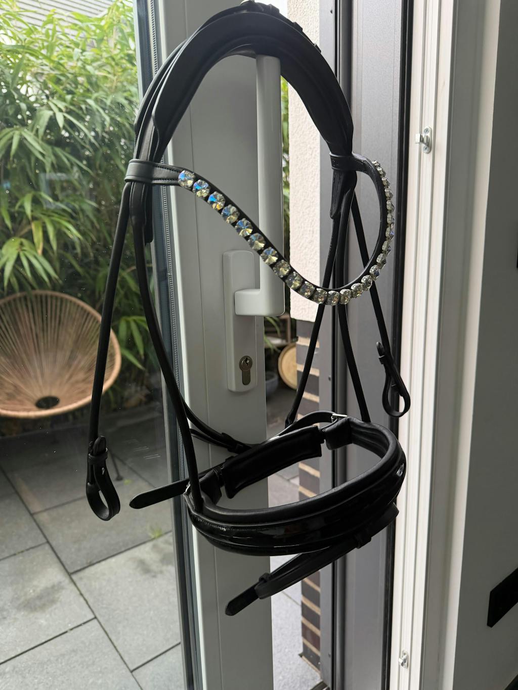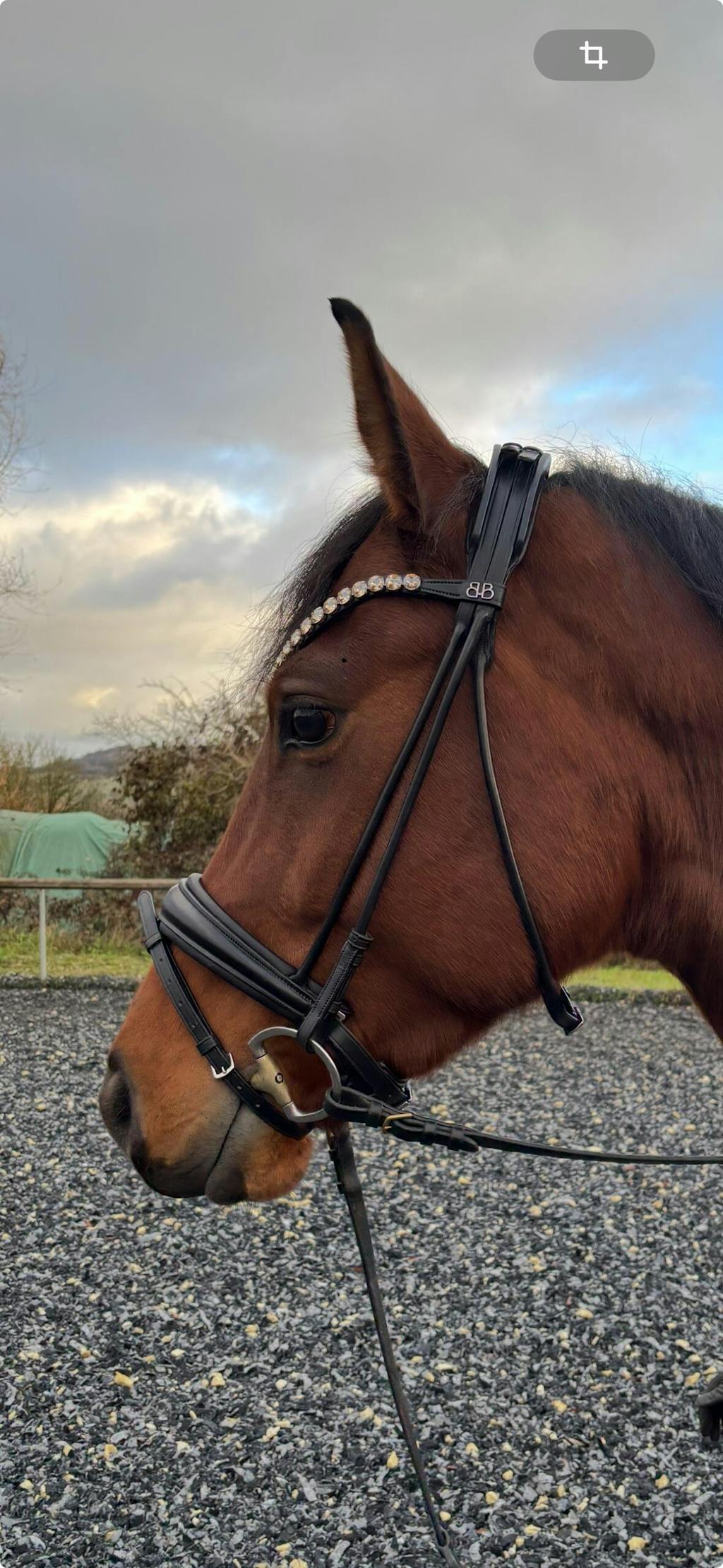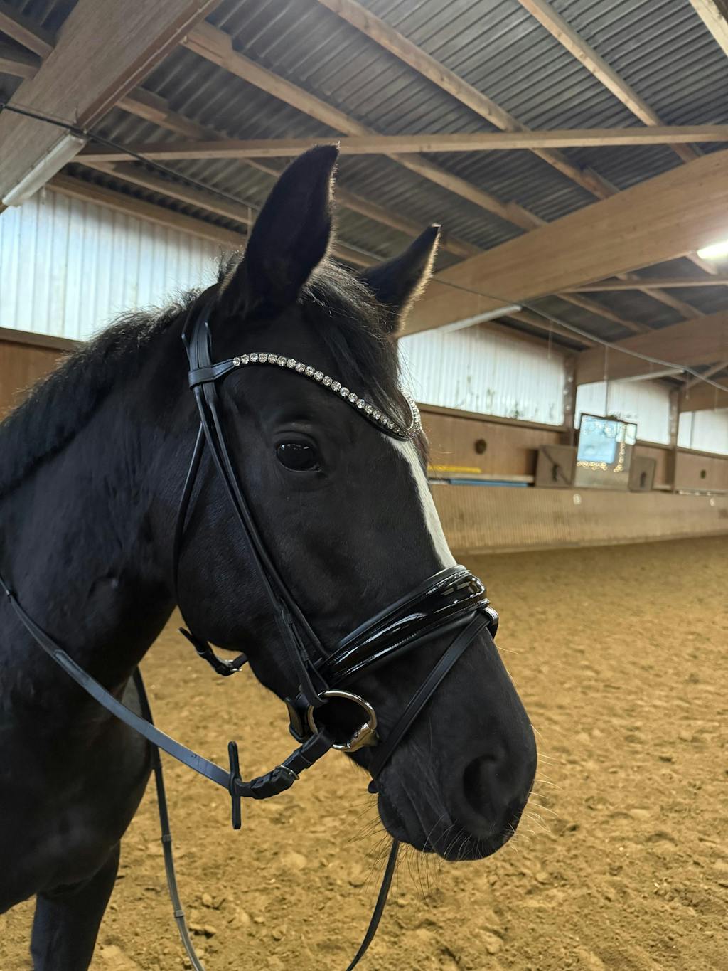 Unser funkelnder Stirnriemen ist das Herzstück deines Zaumzeugs. Bitte achte darauf, dass sich dein Pferd damit nicht scheuert oder wälzt. Kontrolliere regelmäßig die Kristallfassungen – gelockerte Häkchen kannst du vorsichtig andrücken (z. B. mit einer Pinzettenrückseite).