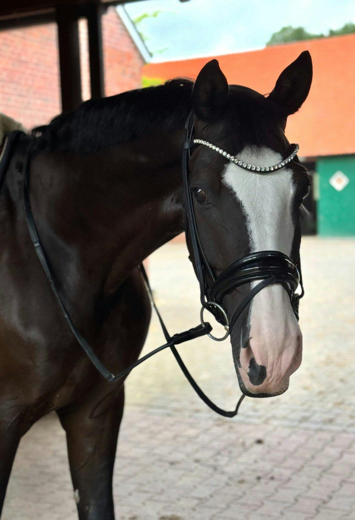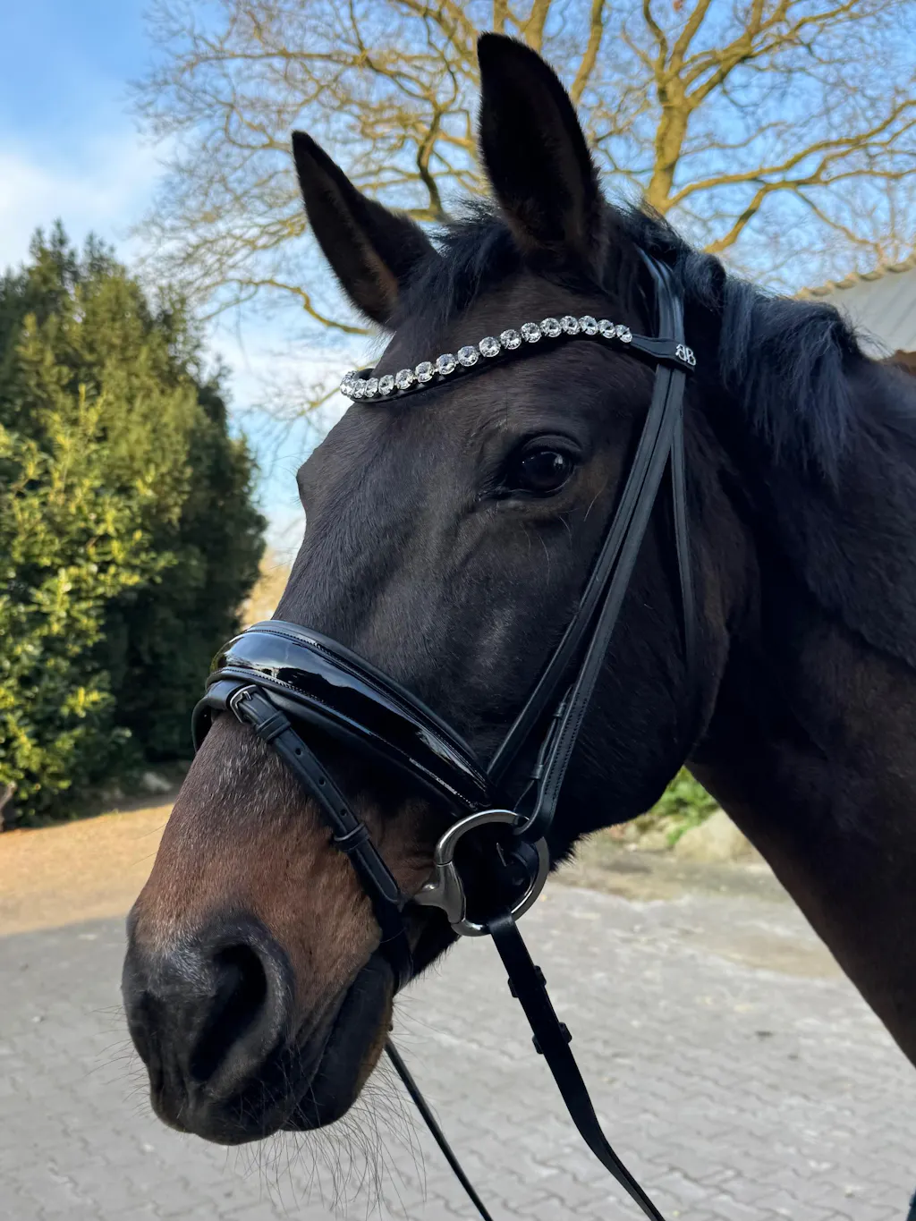 Unser funkelnder Stirnriemen ist das Herzstück deines Zaumzeugs. Bitte achte darauf, dass sich dein Pferd damit nicht scheuert oder wälzt. Kontrolliere regelmäßig die Kristallfassungen – gelockerte Häkchen kannst du vorsichtig andrücken (z. B. mit einer Pinzettenrückseite).
